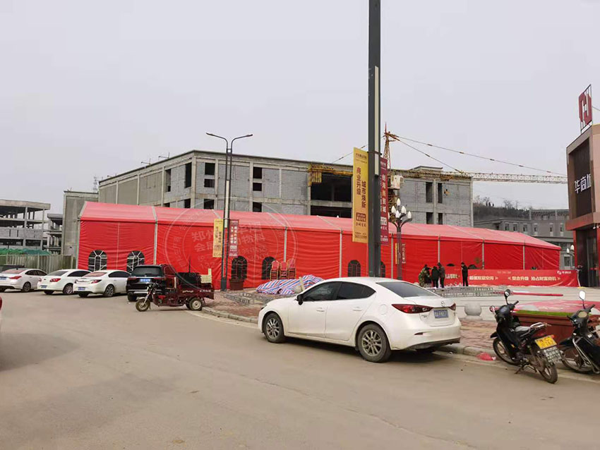 洛陽嵩縣華南城活動現場華熠為其提供紅色篷房租賃,隨著時代迅猛發展,日減增加的